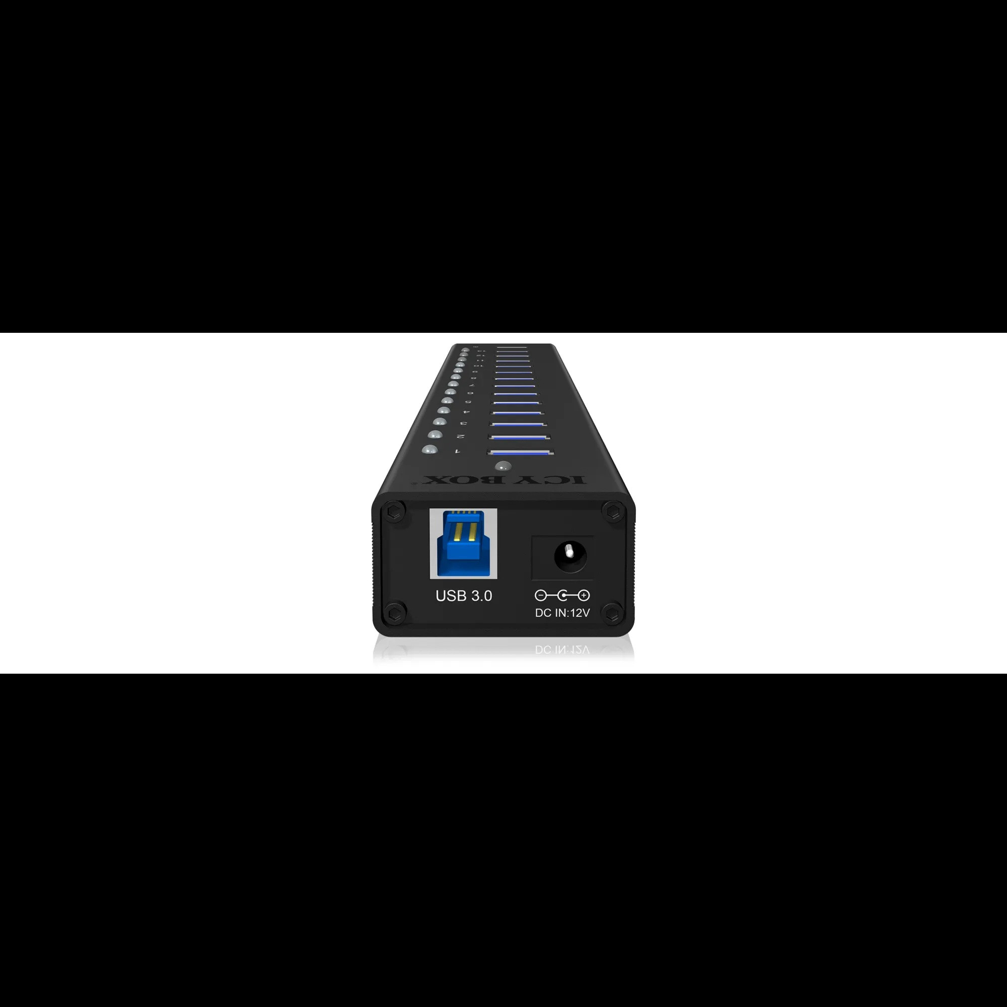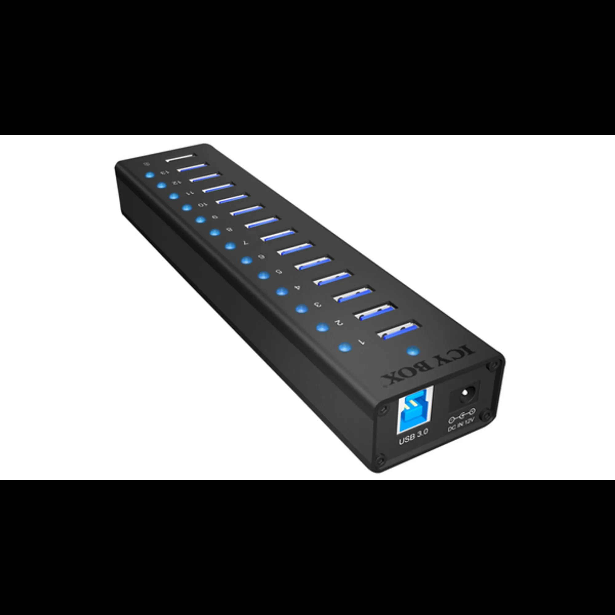 - 13× USB 3.0 Type A csatlakozó és 1× USB töltőport (5 V / 2,1 A)