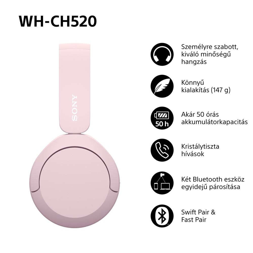 Sony WHCH520 vezeték nélküli Bluetooth fejhallgató (rózsaszín)