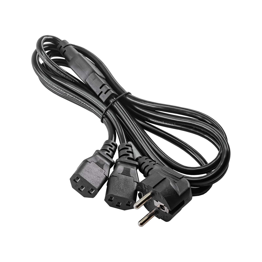 Földelt csatlakozóval ellátott 220V-os Y tápkábel hálózatról üzemelő eszközök, például számítógépek fali aljzatba történő csatlakoztatására használható. Egyszerre két eszköz csatlakoztatható.