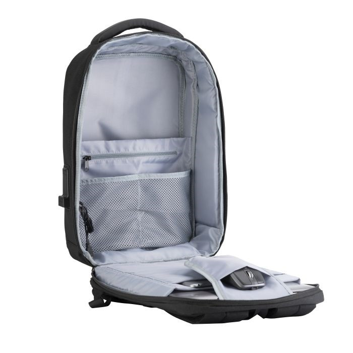 A TOO BPAT008B156-USB hátizsák rejtett zipzárjainak és zsebeinek köszönhetően segítenek megvédeni a táskában található értékeidet. A lopás elleni védelem titka, hogy nem látható hol nyílik a táska, mivel a zipzárak a táska hát felőli oldalán találhatók. Anyaga vastag, nehezebb átvágni, súlya mégis könnyű. Beépített USB portján kényelmesen töltheted telefonod, ehhez viszont egy külső akkumulátort kell csatlakoztass a táska belsejében.