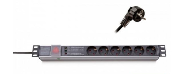 19″-os rackbe szerelhető túlfeszültségvédell elosztó 6 Schuko aljzattal