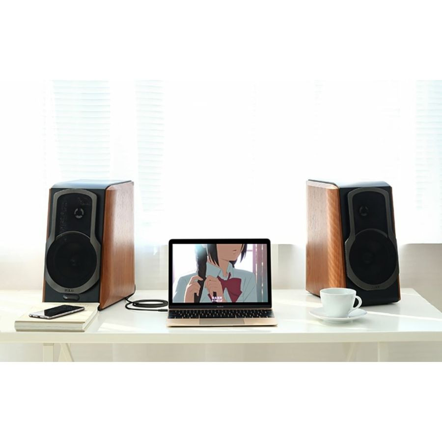 Minőségi audio kábel egyik végén egy 3.5mm sztereo jack csatlakozóval, a másik végén 2db RCA csatlakozóval analóg audio jel továbbítására.