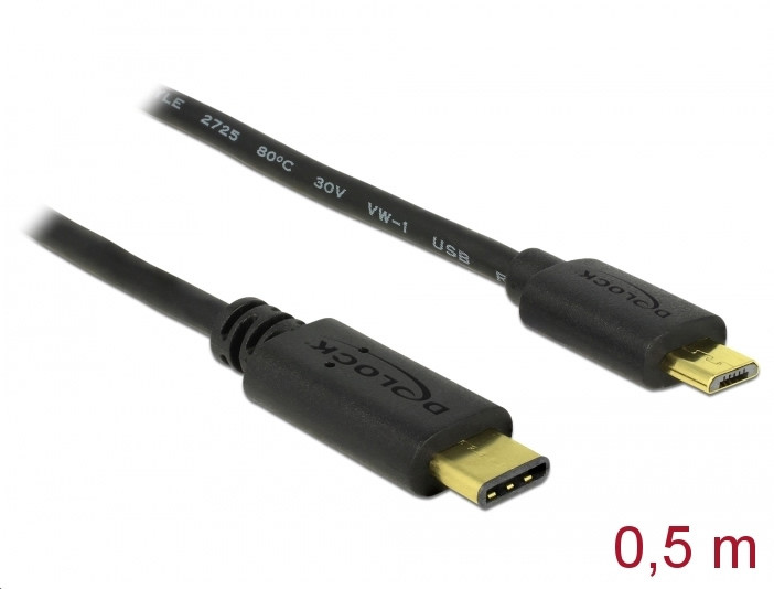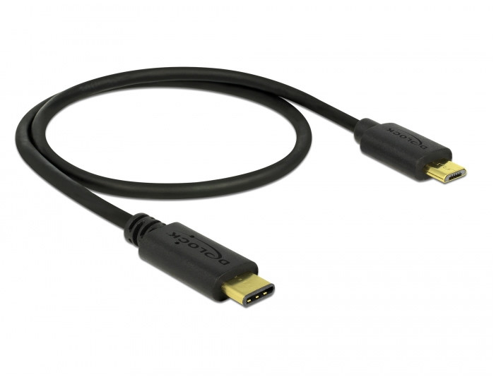 Ez a Delock gyártmányú USB-kábel lehetővé teszi, hogy Micro-B típusú USB-csatlakozóval ellátott készüléket csatlakoztasson egy szabad USB Type-C™-porttal rendelkező számítógéphez vagy laptophoz.