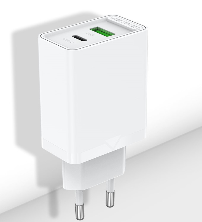 Vention 20W USB-s hálózati gyorstöltő (1x USB-C, 1x USB-A) fehér NEW