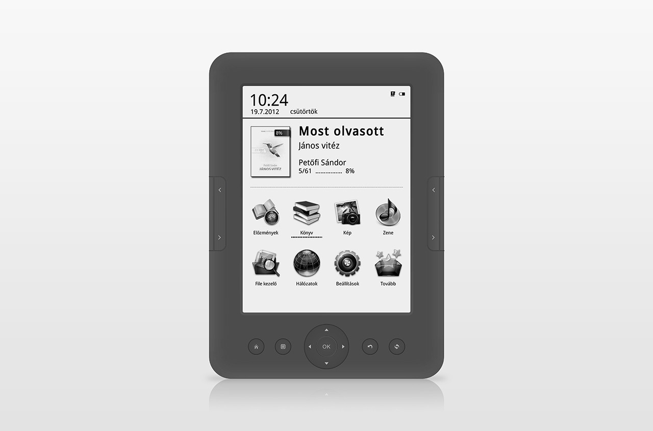 - Funkciók: Állítható betűméret, forgatható kijelző, könyvjelző, felolvasás