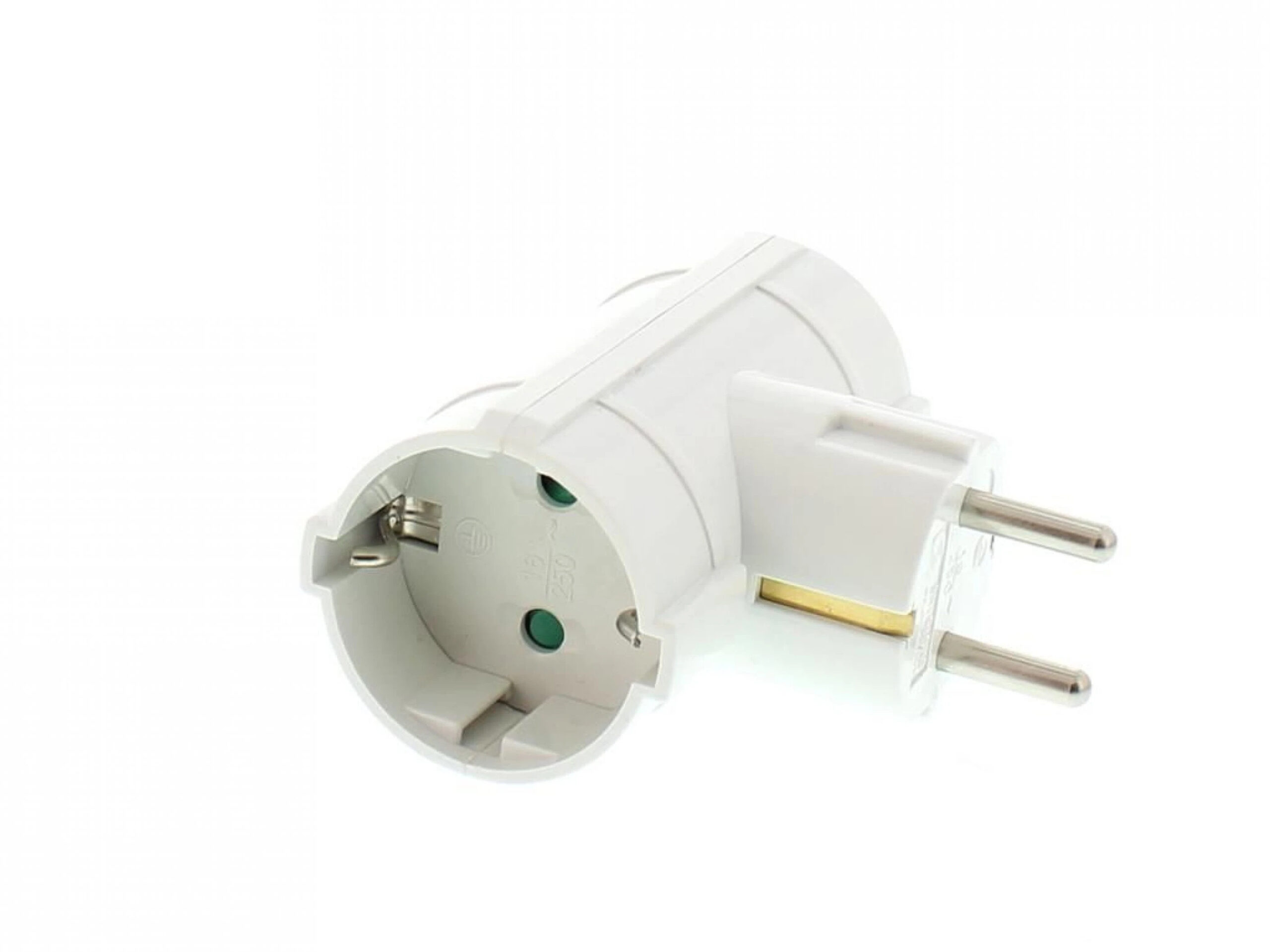 Közvetlenül fali csatlakozó aljzatba dugható T-alakú 2-es elosztó, gyerekvédelemmel